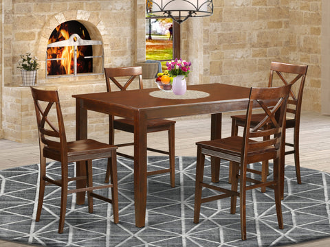 Dining Ensemble DUQU5T-QML-M Counter Height Table & 4 Chairs Set in Mahogany, 5 Piece, 36x60 Inch