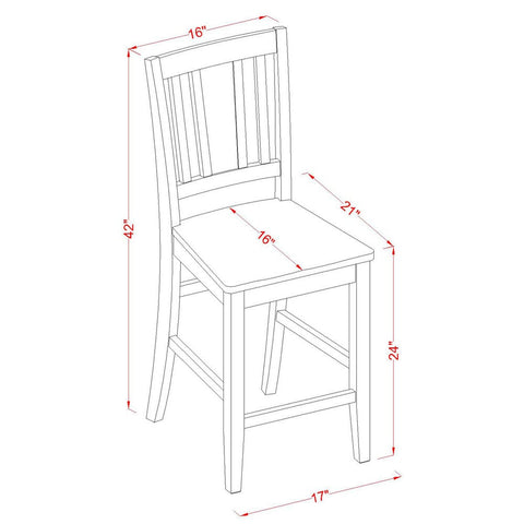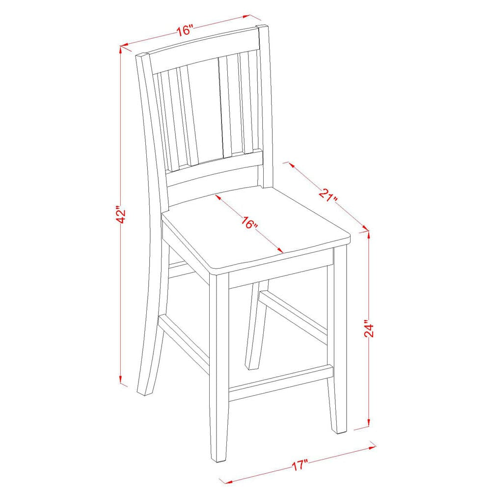 - Chair Dimensions: Length: 21; Width: 17; Height: 42.