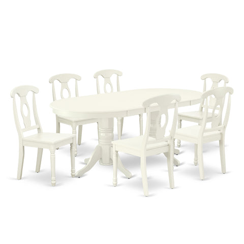 VAKE7-S71-G Luxurious 7-Piece Dining Set with Oval Table, Leaf Extension & 6 Elegant Chairs, 40x76 Ivory