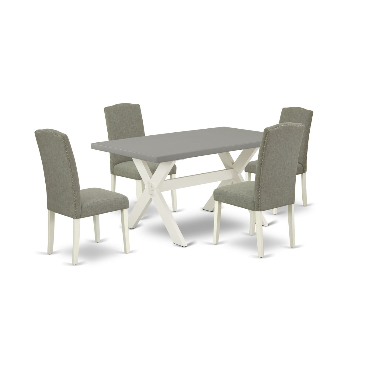 This dining room table set includes 4 amazing parson chairs and an awesome dining table. This kitchen rectangular table is offered in an elegant Wire brushed Off-White finish. In addition, the modern dining chairs in a Dark Shitake linen fabric enhance the elegance of any kitchen or dining room. Our dinette set provides great durability because this rectangular table is built from high quality Asian Wood which can bear the weight of 300 Lbs. We have created these padded parson chairs and a rectangular table with the help of highly experienced carpenters, who generate a smooth and high-end finish to this dining room table set. We try to offer innovative as well as easy to assemble products. Our high-quality rectangular table set is perfect for you and your beautiful dining room as well as the kitchen area. You can use it for casual home parties or intimate gatherings. Keep enjoying East West modern furniture!