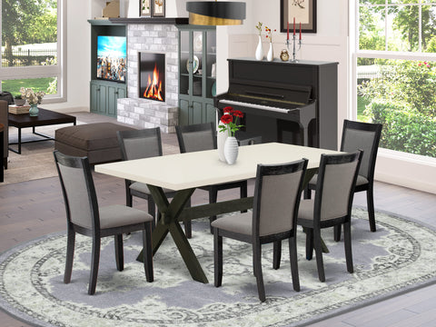 This 7-piece kitchen table set includes a kitchen table with 6 wood dining chairs to make your friend's and family's meals more comfortable and pleasant. The frame of this dining room table set is created of top quality Asian wood, which offers wonderful strength and stability. The mid century dining chairs are slightly and elegantly curved, expertly finished with the help of highly experienced craftsmen. These parson chairs seat offer linen fabric which is soft and has strong spring elasticity, offering the best comfortable contact experience. The seat of the upholstered dining chairs is wide enough to make your seating comfort. Linen Fabric wood dining chairs add stylish intrigue to your dining room. This dining set stands on a sturdy hardwood frame with solid legs and a contemporary Wire Brushed Black finish. The dining room set has a rectangular Linen White tabletop with X-Style Legs. The matching color of the upholstered dining chairs with the rectangular dinner table brings a good contrast to any dining area area. This beautiful mid-century modern dining set is simple to clean with a damp towel and will always provide fresh appeal. The worth mentioning is that the installation process of our magnificent dining set is very simple and easy to operate. Each set comes conveniently flat packed with easy to follow instructions and all essential tools included. You only need to follow the steps in the manual to accomplish the assembly in a short time. You'll love our kitchen dining table set quality, style, and affordability!