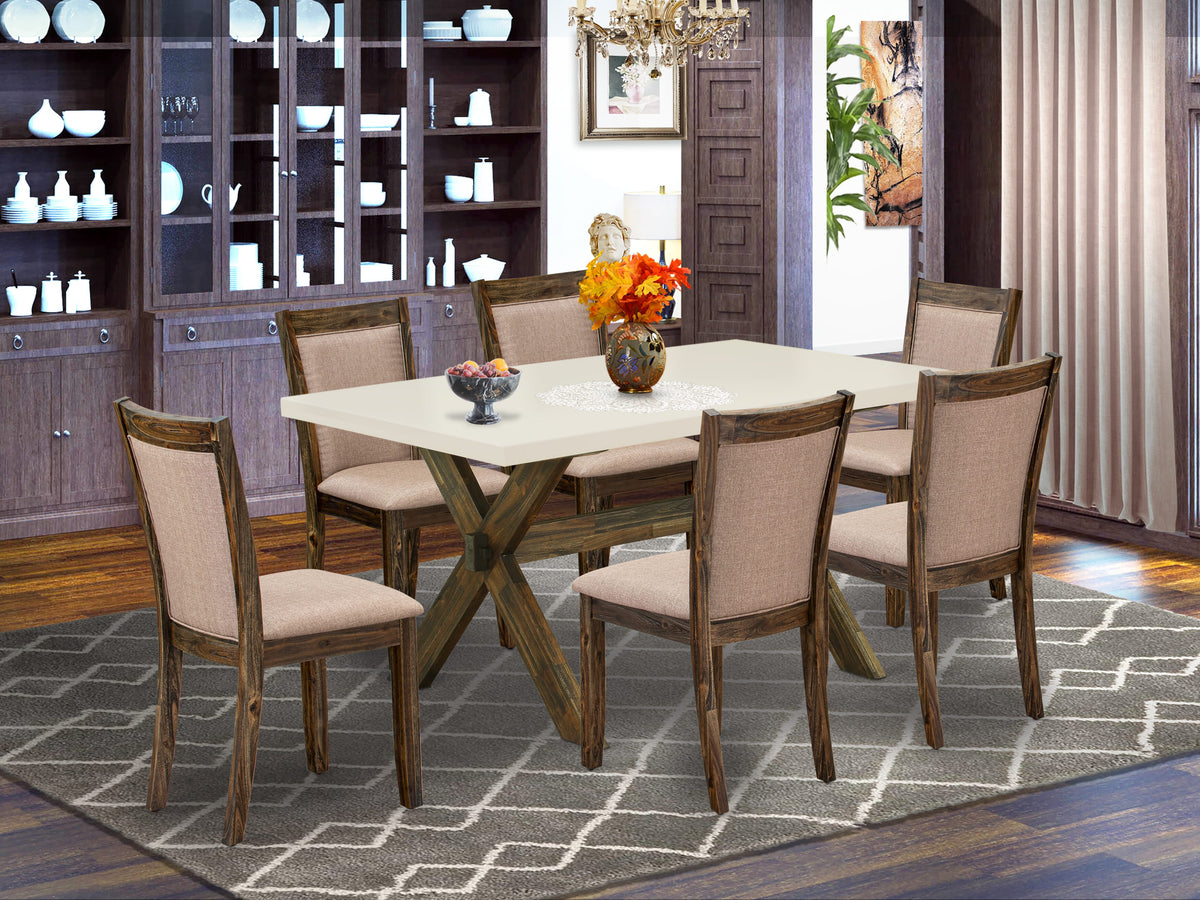X726MEKHM-P Contemporary 7-Piece Dining Ensemble with Rectangular Table and Linen Chairs in Dark Khaki