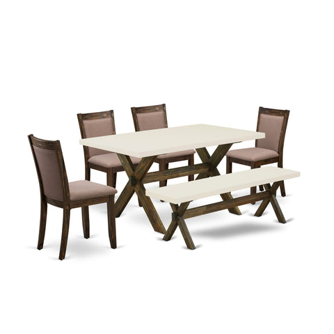 This dining room table set includes 4 dining padded chairs, a dining room bench and 1 wood dining table. This wooden dining table and wood bench have a rectangular top and beautiful legs. The hardwood frame and softly padded back ensure that these dining chairs' sturdiness and offer decent support to your back, in addition to their ideal size these Urban Style chairs, are trouble free to build and easy to rearrange. These simple but charming dining room chairs will add ambiance and style to your dining room. Provide your home with a pop of chic style with this must have modern dining set. A contemporary twist on a classic design, this eye-catching kitchen dining room set design will liven up any timeless appeal. Just by switching out your chairs and modern rectangular dining table, you can effortlessly refresh your dining space. This dining room table set is very easy to put together. You only need around 1 hour to build this kitchen dining set. This dining room set comes with all the necessary hardware to put together this dinette set. These kitchen chairs are easy to carry or move around. Enjoy with East West Furniture!