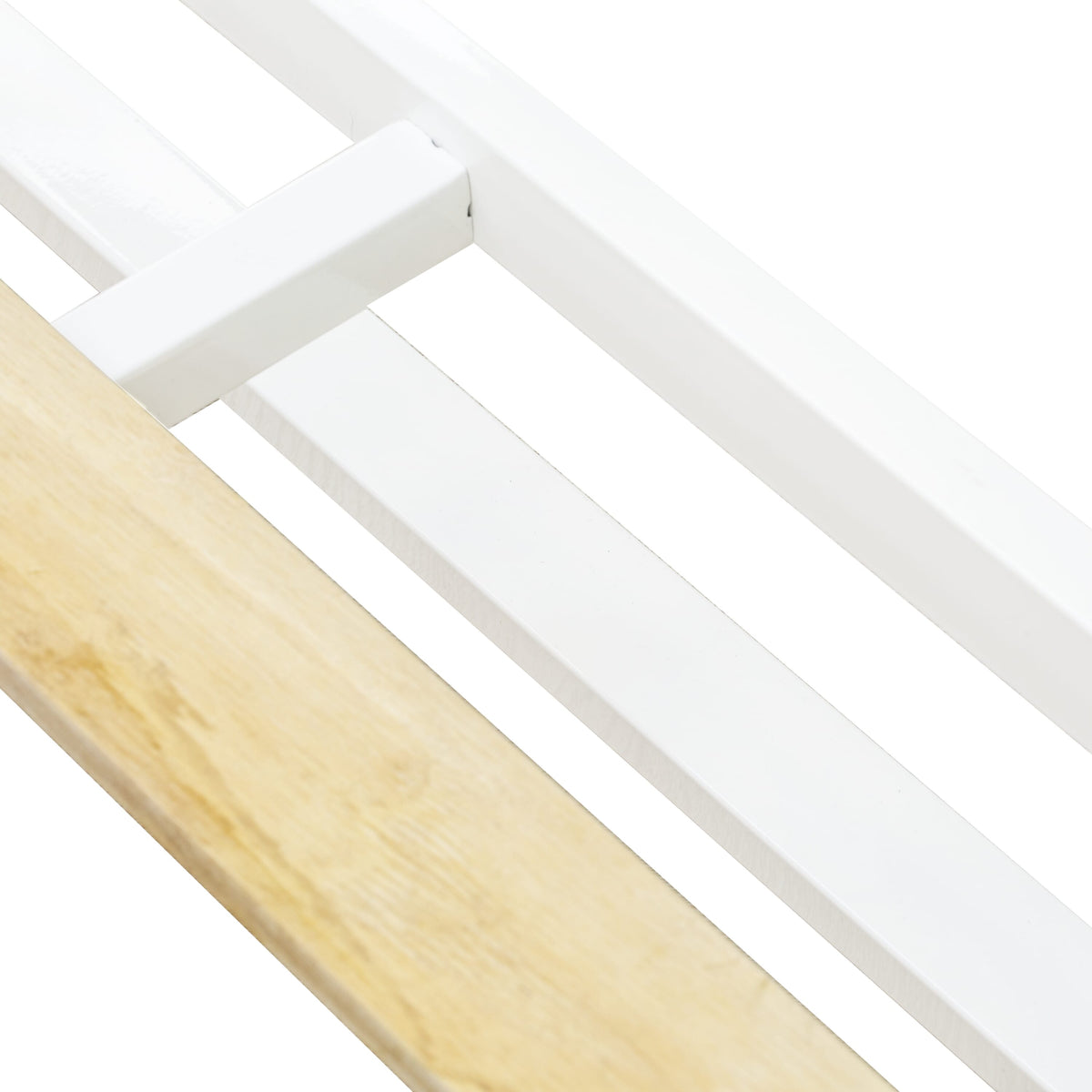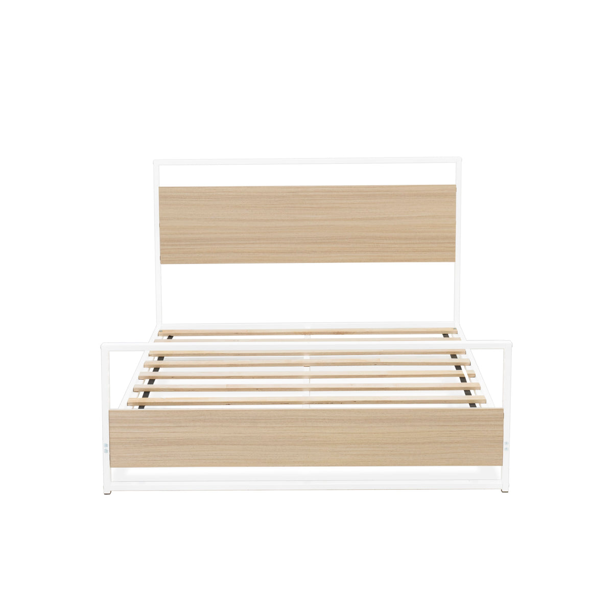 - Full Size Platform Bed Frame Color: Powder Coating White and White Wood Laminate