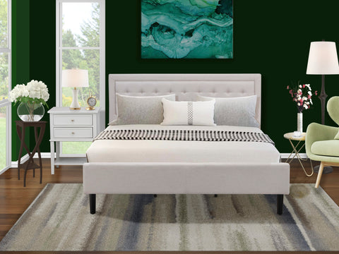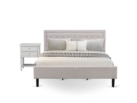 This upholstered bed set is great to offer a stunning appeal to any area. It is time to give your bedroom a major style upgrade with this upholstered wood bed frame. We are providing a 2 pc king size bedroom set for bedroom that contains 1 king frame with a headboard and 1 eye-catching mid century nightstand. This Mist Beige linen fabric fannin wood bed frame enhances the appeal of any bedroom to a luxurious level. Our exclusive creation wooden set for bedroom will surely feel comfortable when sitting on this platform bed frame and its plywood slats are good to provide ample support as well as the sturdy equidistant slats boost durability and extend the life. Everything you need for assembly is effectively packed no additional instruments are required for this wooden set for bedroom, and all you have to do is to install the bed together with your family or friends in a short time and enjoy the happiness of creativity.