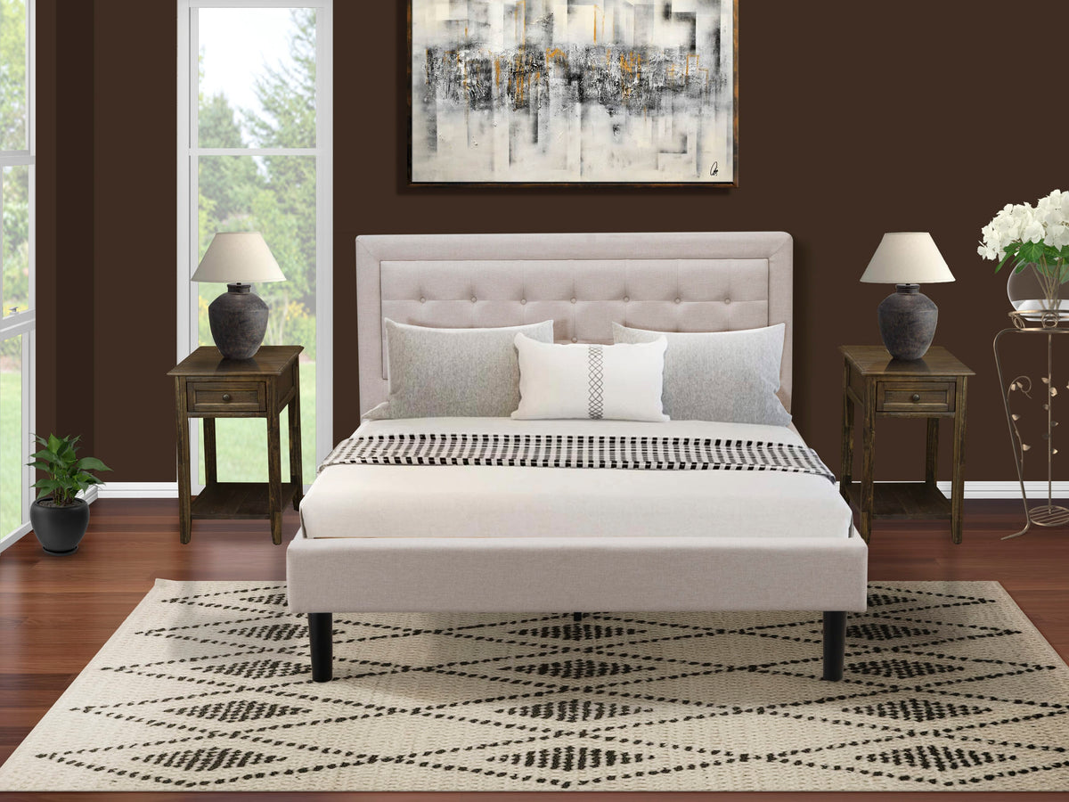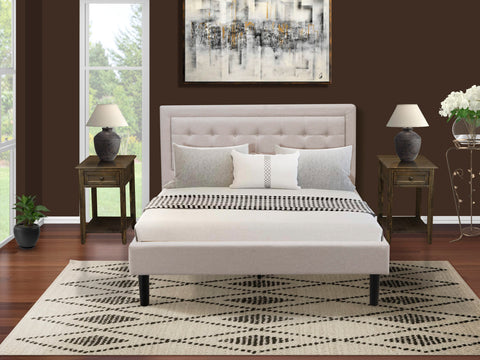 This upholstered bed set is excellent to provide a stunning appeal to any area. It is time to provide your master bedroom a major style enhanced with this upholstered platform bed frame. We are offering a 3-piece queen bedroom set for a bedroom that contains 1 queen size bed with a headboard and 2 eye-catching night stands for bedrooms. This Mist Beige linen fabric platform bed enhances the appeal of any bedroom to a deluxe level. The wood nightstands have two USB ports and 02 outlets so that you can charge up to 02 mobile devices at the same time or plug in your computer for the ultimate technical convenience. Our unique creation wingback bed set will surely feel comfortable when sitting on this platform bed frame and its plywood slats are great to give ample support as well as the sturdy equidistant slats boost durability and increase life. Everything required for assembly is efficiently packaged no further equipment is required for this bedroom furniture set.