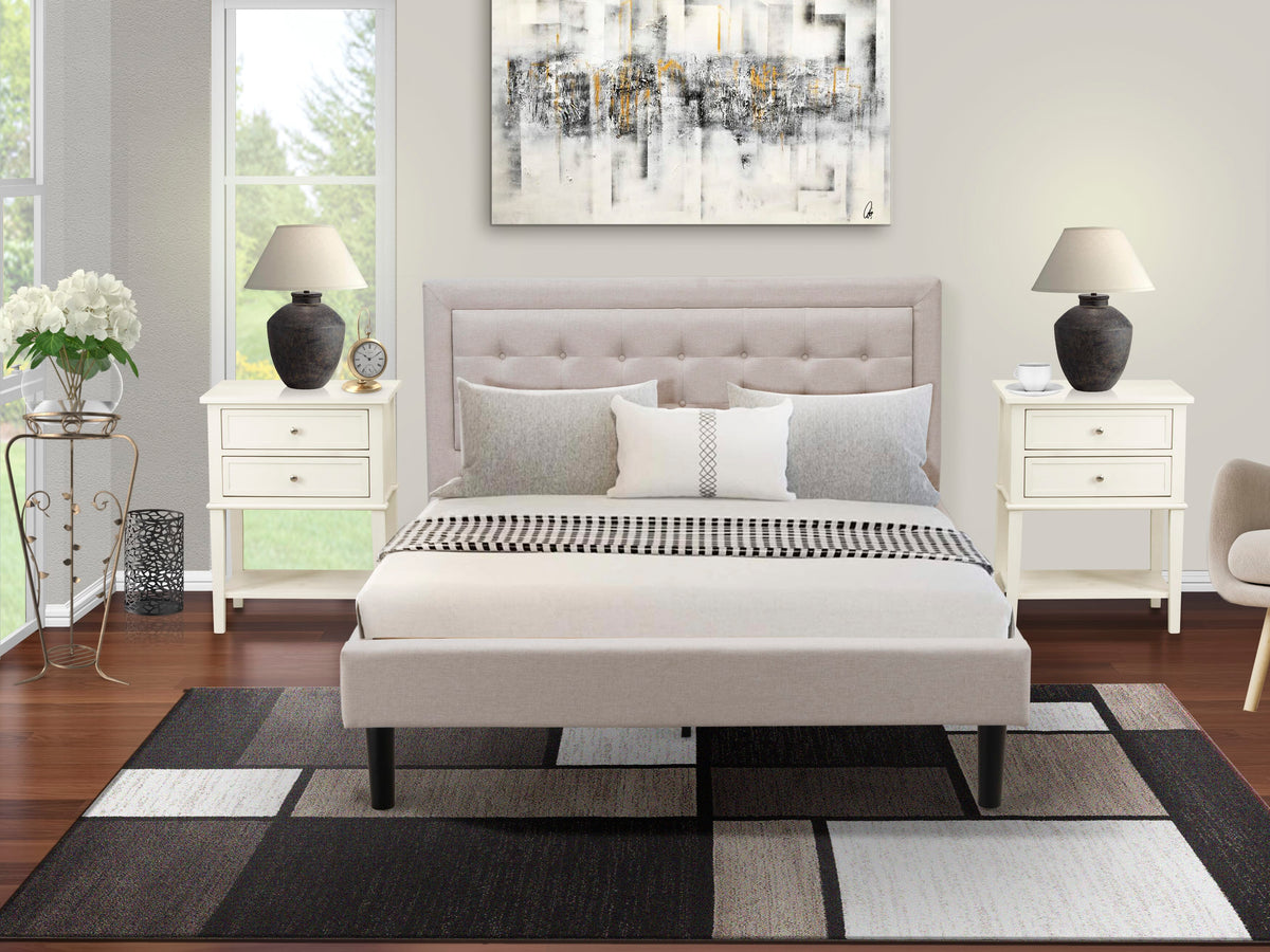 FN08Q-K78TW 3-Piece Bedroom Ensemble with Queen Bed Frame and Pair of Petite Side Tables - Sturdy Craftsmanship - Mist Beige Upholstery