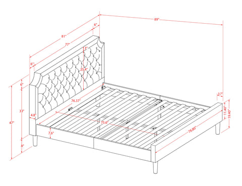 • Dimensions of king size bed: Length: 89; Width: 81; Height: 47.