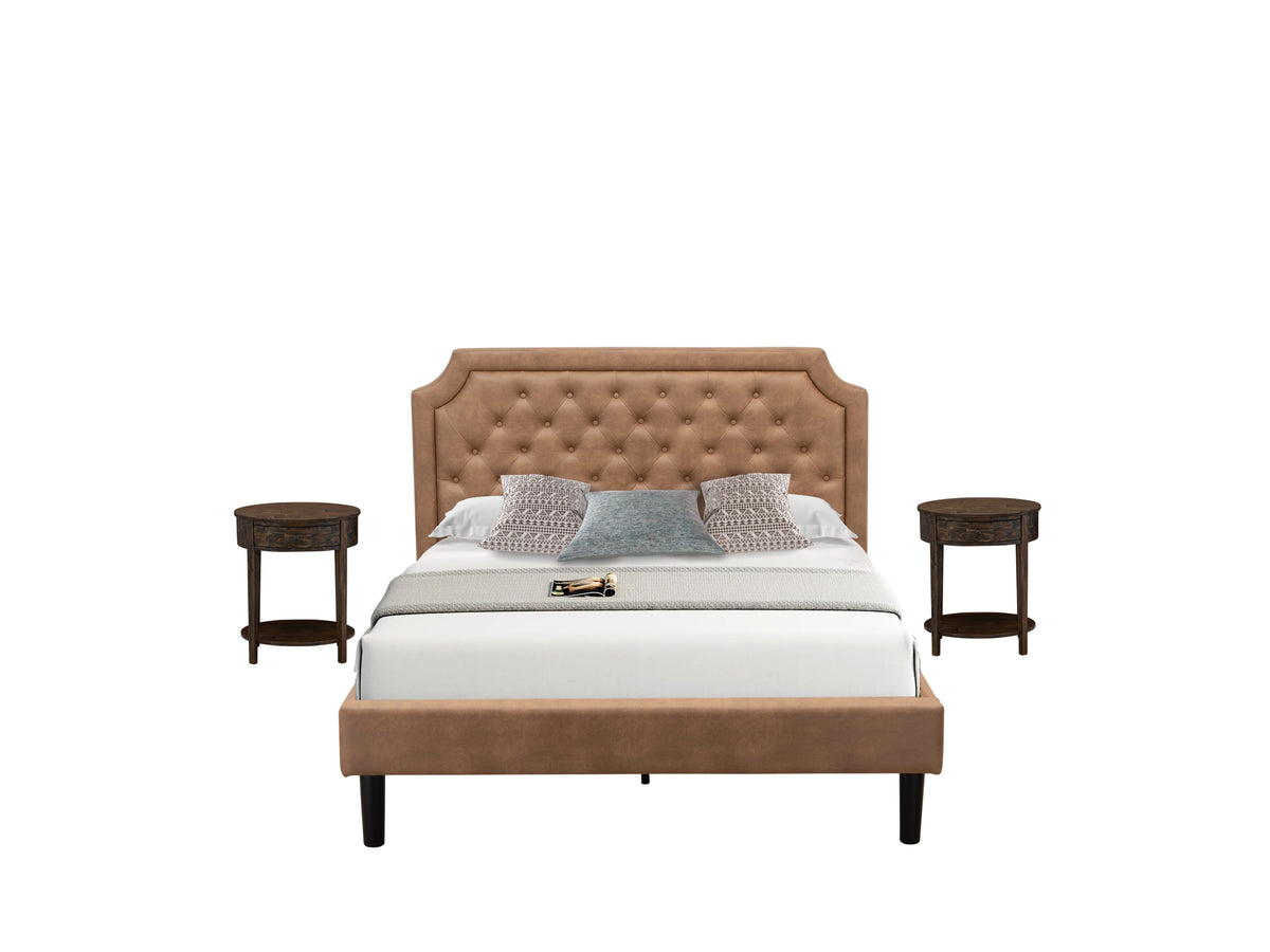 Package Includes 1 Platform Bed Frame and 2 Night Stands For Bedrooms.