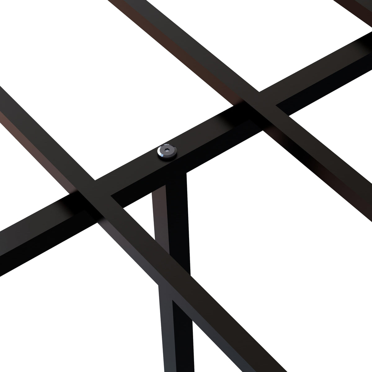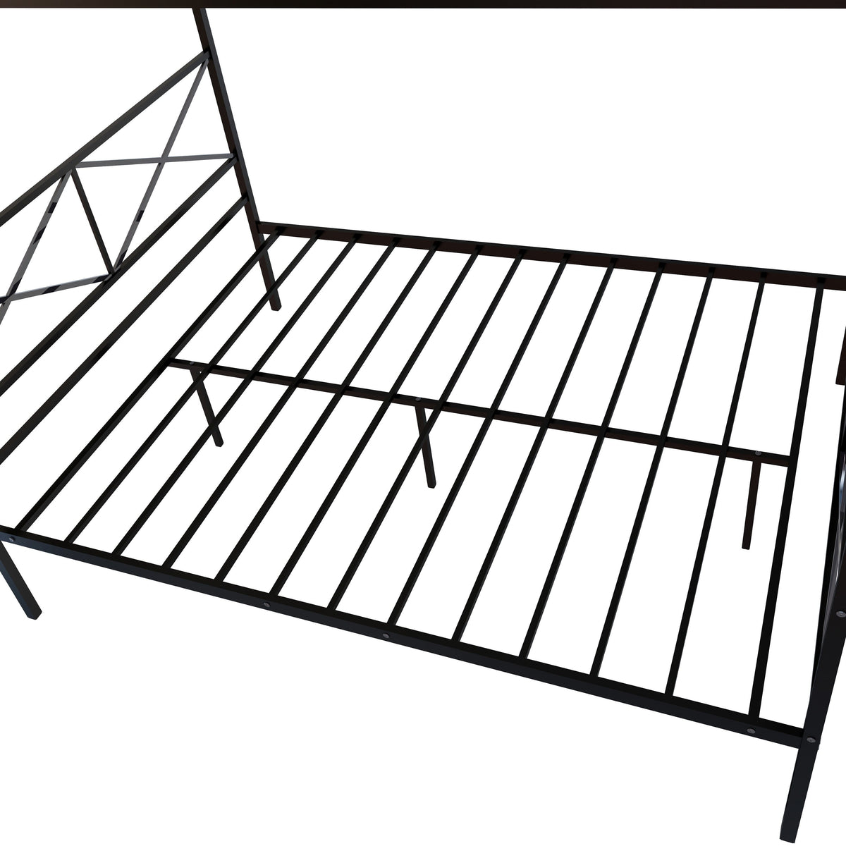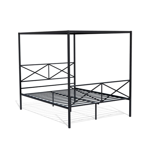 This stunning canopy queen bed frame makes an attractive addition to any master bedroom. We designed this metal frame by using a metal structure for ultimate strength and safety design. Strong frame and manufacturing experience can avoid noise, vibration, and scratches. This magnificently crafted piece is made with an attractive finish to add an attractive touch to any bedroom. A sturdy and well-refined queen canopy bed is finished in Powder Coating Black. Classic modern design can go with any interior decoration so that you can relax more comfortably. Our queen bed frame will help to make any master bedroom lavish and take sleep to a whole new level with comfort. The bed frame offers sufficient space for storage boxes, clothes, etc. The standard large base is high enough for most mattresses. Simply with a mattress, you will enjoy a night of sweet sleep. No spring box is needed. Our canopy queen metal bed comes with all the parts and tools needed for assembly. Assembly steps are listed in the instruction manual and are easy to follow. This platform bed frame is simple to clean along with a damped cloth because of its smooth finish.
