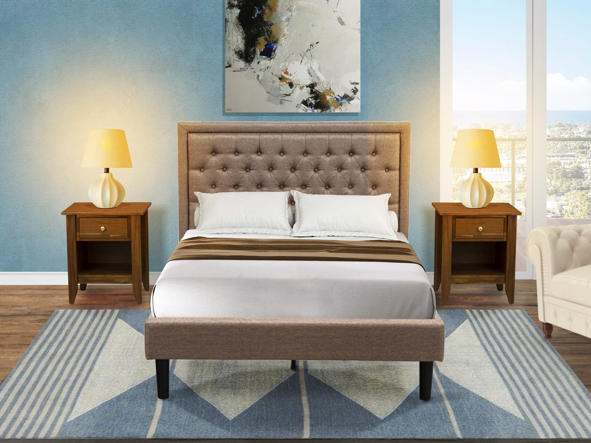 This gorgeous wooden bedroom set makes a stunning addition to any bedroom in your home. Our 3 Piece full bed set includes 1 full size platform bed and 2 nightstands bedroom with 1 drawer. Our bed set will impress everyone that will come to your house because it fits with any type of decor. We have constructed this full bed frame and wooden night stand by using engineered wood to create strong support for you and your mattress. This versatile bed features a modern wooden headboard made from robust wood that will surely be the focal point of your bedroom and a great place to lean on and relax, with foam padding covered with Dark Khaki Linen Fabric. This bed set is low maintenance furniture and it is a great choice for Budget-friendly. The step by step Assembly instructions for the headboard, footboard, wooden slats and other accessories are all in the package, you will be able to assemble these in a short time. Our Linen Fabric headboard is quite easy to clean and always offers a good appeal. Our product will add more elegance to your room and you will feel well.