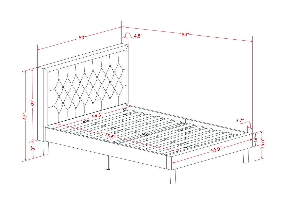 - Dimensions of Modern Bed Frame: Length: 83.6; Width: 59; Height: 47.