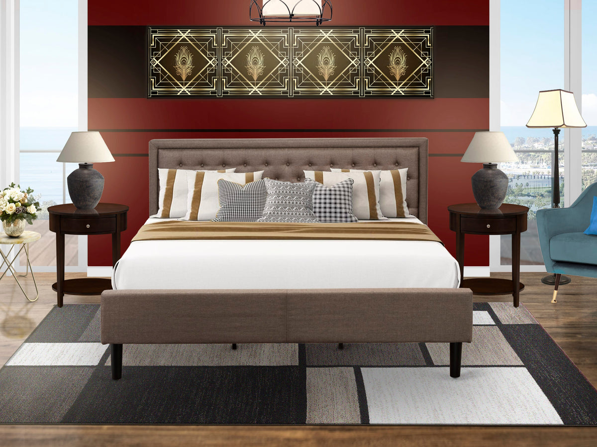 We have constructed this king platform bed and wooden nightstand by using engineered wood to create strong support for you and your mattress. Our versatile bed features a modern wooden headboard made from robust wood that will surely be the focal point of your bedroom and a good place to lean on and relax, foam padding covered with Brown Linen Fabric.