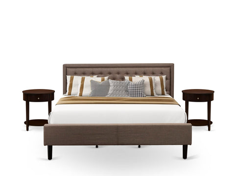 EAST WEST FURNITURE - KD18K-Z94EX - 3 PC WOODEN BEDROOM SET WITH 1 KING PLATFORM BED FRAME AND 2 NIGHT STANDS FOR BEDROOM