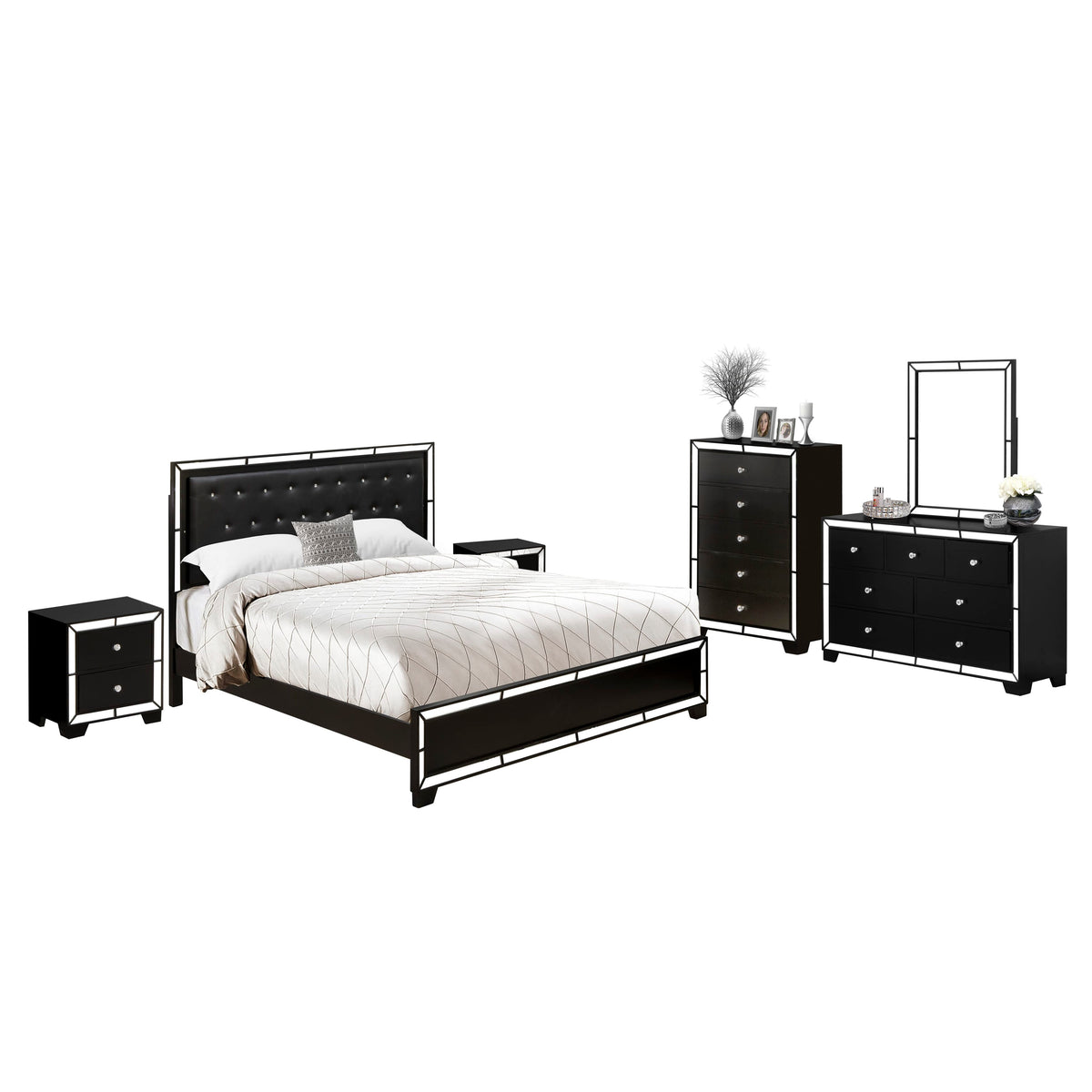 Our Black magnificent faux leather upholstery and padded king headboard will help to make any master bedroom lavish and take sleep to a whole new level with comfort. We are providing a 6-piece king size bedroom set that contains 1 king size frame, mid century nightstands, a bedroom dresser, a makeup mirror, and a wooden chest. Made of engineered wood, the wood bed frame provides dense and sturdy support for you and your family. Elegantly designed, the frame of this king bed is created with sturdy wood that has been reinforced with side rails and center legs to ensure long-lasting support. This king size bed frame is the perfect way to upgrade your bedroom's appeal. Our king size frame headboard has LED Light with different modes. 3 stages of headboard light can be adjusted according to different requirements like a night time light, Energy saver light, and bright studying light. Under-king bed clearance provides extra storage space, perfect for storing small things. Our king size bed set is simple to clean along with a damped cloth because of its smooth finish. This upholstered bed can be easily assembled with the provided step-by-step assembly instruction and components pack. No further tools will be needed.