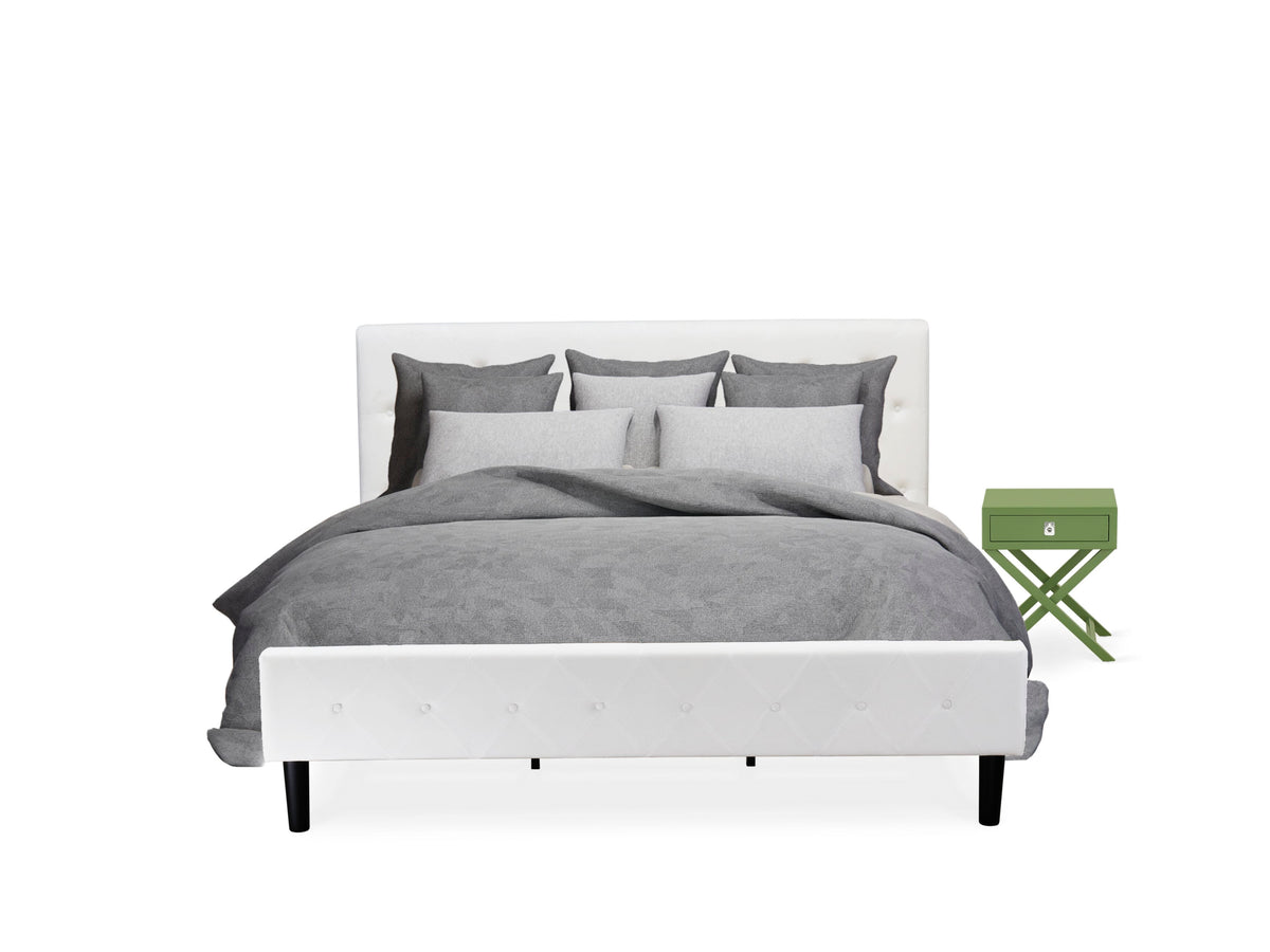 NL19K-4KAOZ Luxe Bedroom Set with White Velvet King Bed & Green Nightstand