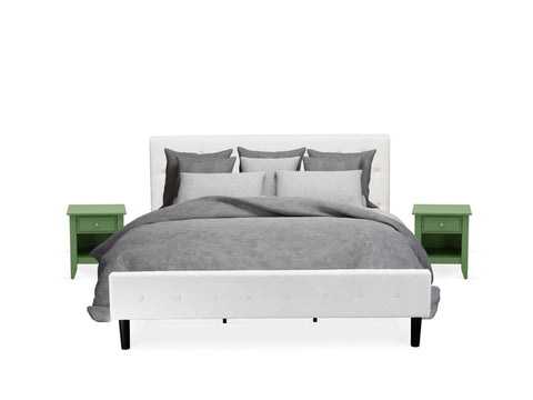 NL19K-K29EK 3 Piece Bedroom Ensemble King Bed with White Velvet Headboard & Green Nightstand Finish
