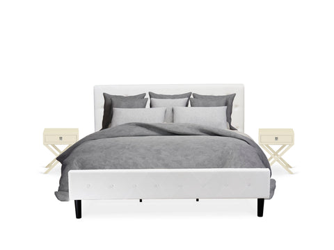 NL19K-FG8I7 3-Piece King Bedroom Ensemble Tufted Bed in Lux Velvet and Snowy Nightstand