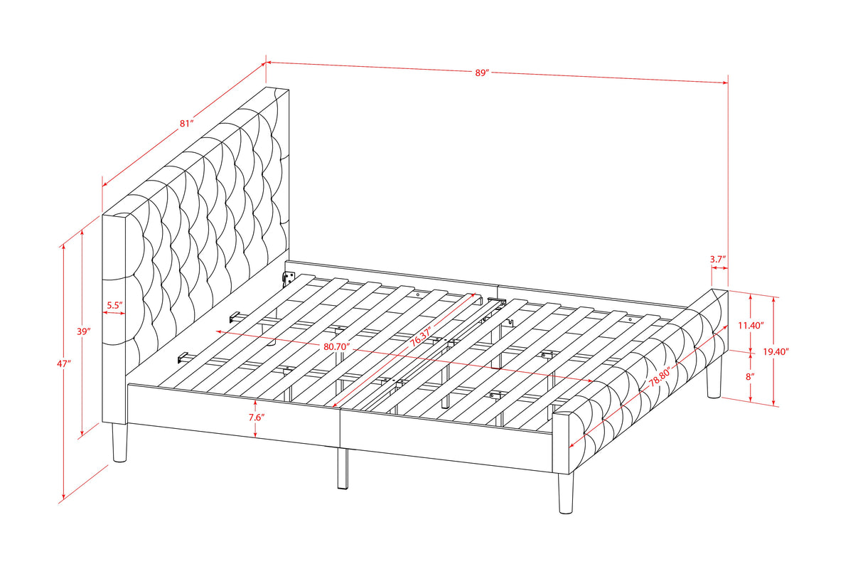 - Dimensions of Bed: Length: 89; Width: 81; Height: 47.