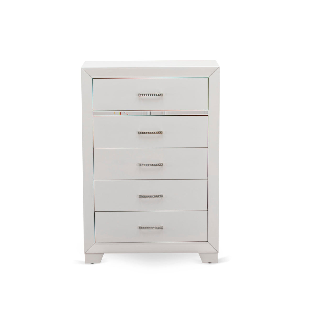 PA05-M7F6GS Pandora 3-Piece Bedroom Collection Queen Bed, Nightstand, Chest in Timeless White Design