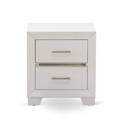 This elegant white contemporary modern nightstand makes a stunning addition to any bedroom in your home. 1 Piece modern nightstand with White Finish. Create a safe reliable space for all your bedroom necessities with the east west Nightstand. Made of MDF with wood veneer, the 2-drawer nightstand is sturdy and durable. Besides, exquisite workmanship and four evenly stressed legs ensure the solidity of the overall frame structure and provide sufficient stability. This gorgeous nightstand is low maintenance and it is a perfect choice for budget-conscious families. Simple assembly required, All Hardware and tools provided. Our wood nightstand is quite simple to clean and always gives a great appeal.
