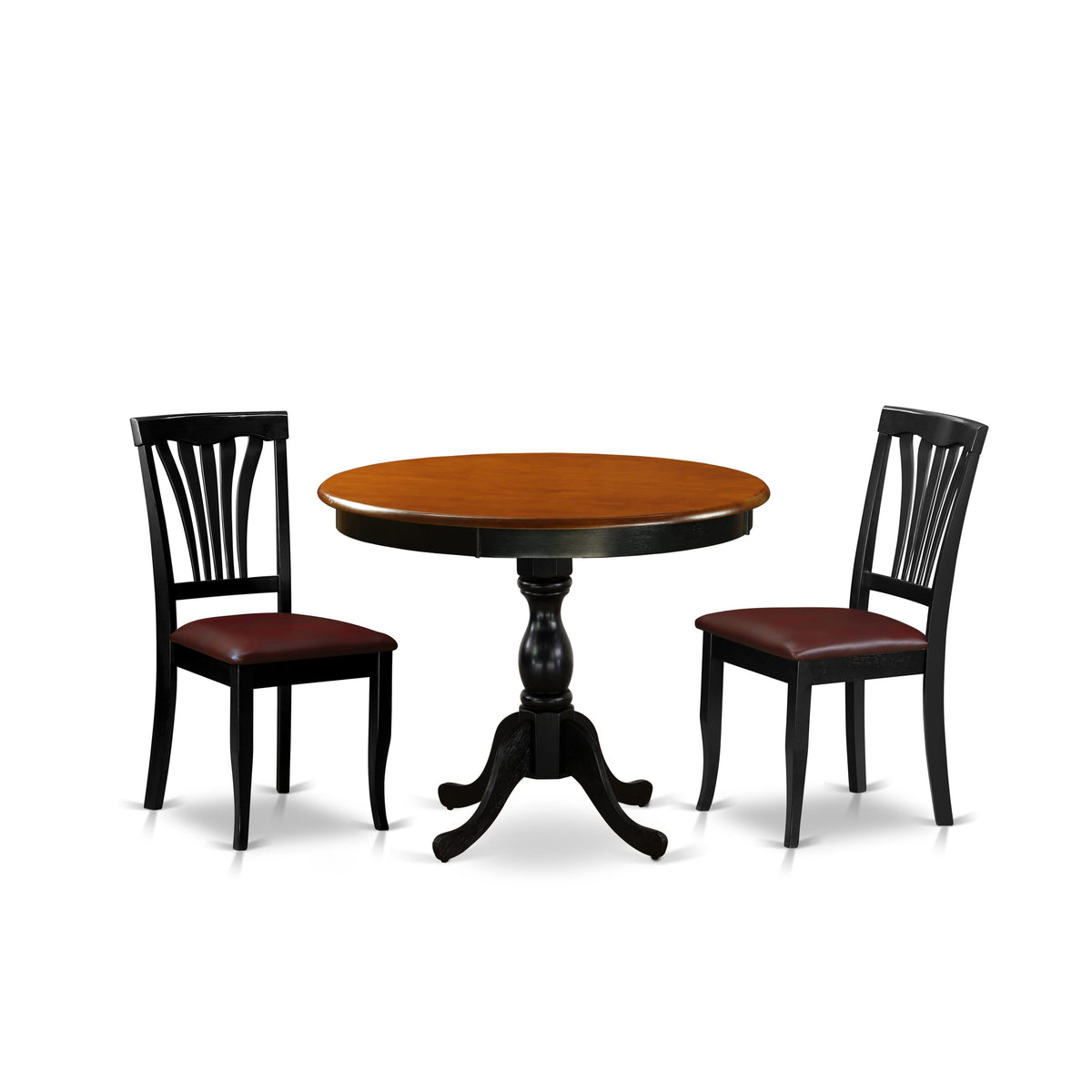 AMAV3-HYC-CY Cozy Cherry Black 3-Piece Round Pedestal Dining Set with Faux Leather Chairs for Compact Areas