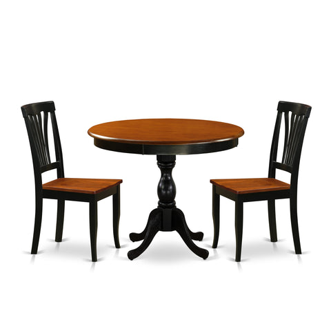 AMAV3-FSB-H 3 Piece Dining Bundle with Round Pedestal Table and Two Chairs for Cozy Spaces, 36 Black & Cherry