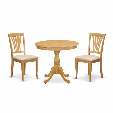 AMAV3-0VC-I 36 Round Dining Table Set with Pedestal & 2 Upholstered Chairs, 3-Piece, Oak