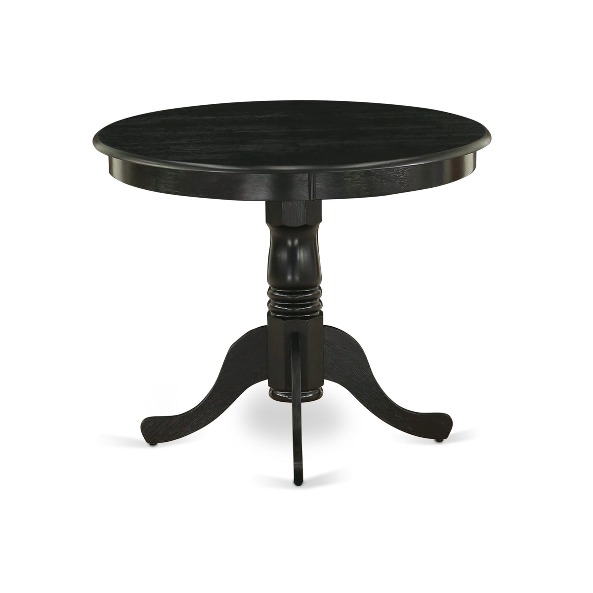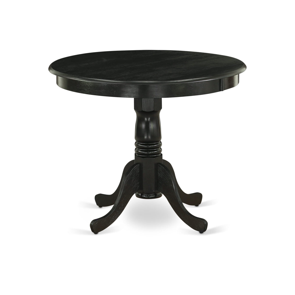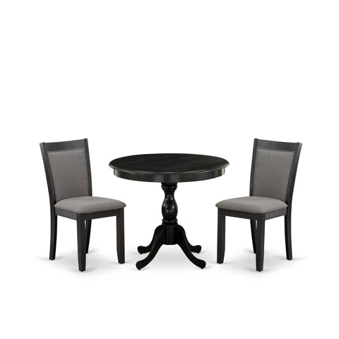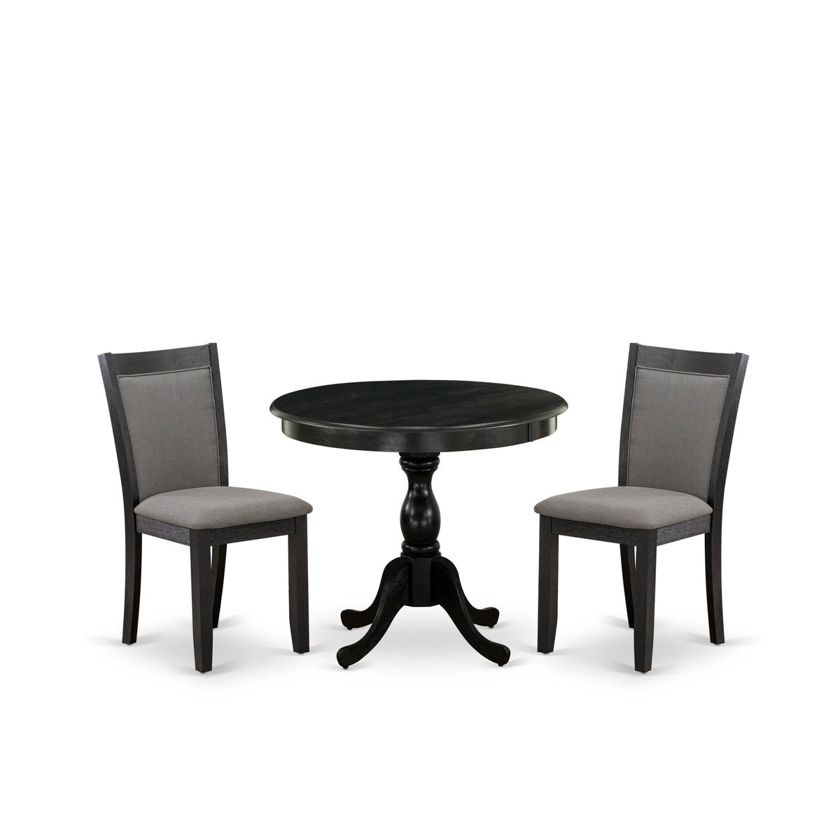 The innovative design of this transitional, modern dining set is a wonderful mix of classics that meets contemporary attraction. 3-piece dining room table set included 2 Dark Gotham Grey kitchen chairs and a mid century modern dining table has Wire Brushed Black finish accomplished with any home décor style as the perfect for any dining room and kitchen area. Create a modern dining space with this mid-century 3-piece dining room table set. The matching wood finishes and beautiful contemporary design add instant style to any kitchen or dining room. Made from solid rubberwood with a Wire Brushed Black finish, the wooden dining table has a gorgeous pedestal. The chair features an upholstered seat and back, while the back of the chair is outlined in a wood frame and the center of the back is upholstered. This kitchen dining set comes with easy parts and instructions that are easy to Assemble for our customers. All tools, hardware and instructions required to put this dining set together are included in the package. This modern dining set features an ultra-modern design that will help blend in with any decor. Keep enjoying East West Furniture!