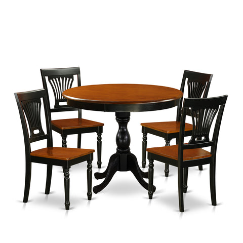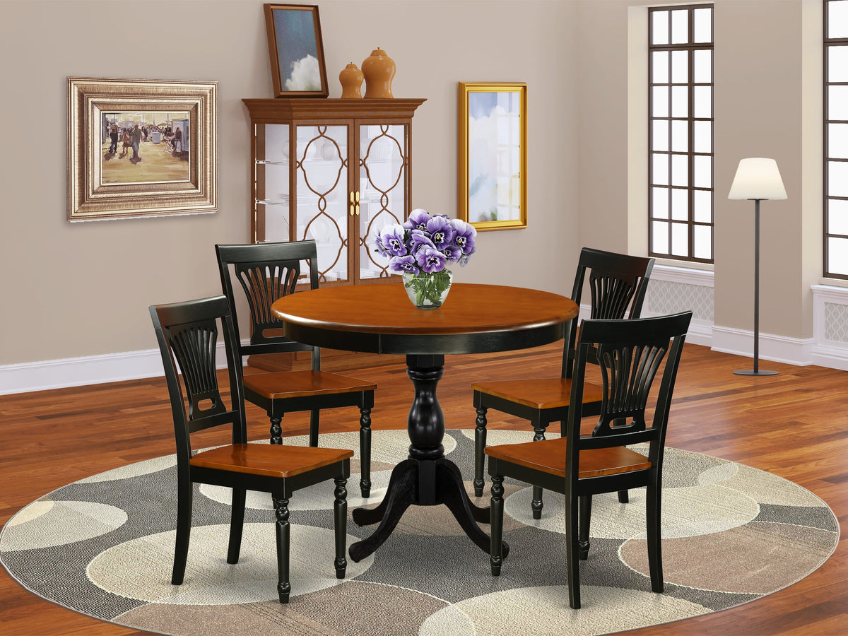 AMPV5-J75-C Retro Round Dining Table Set for 4 with Pedestal and Chairs, Black & Cherry Elegance