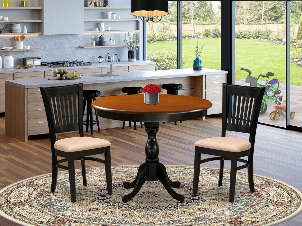 AMVA3-AN5-8 3 Piece Dining Ensemble with Circular Table and Dual Upholstered Chairs