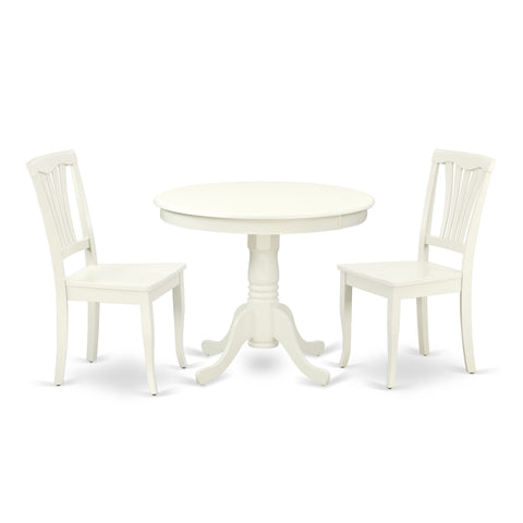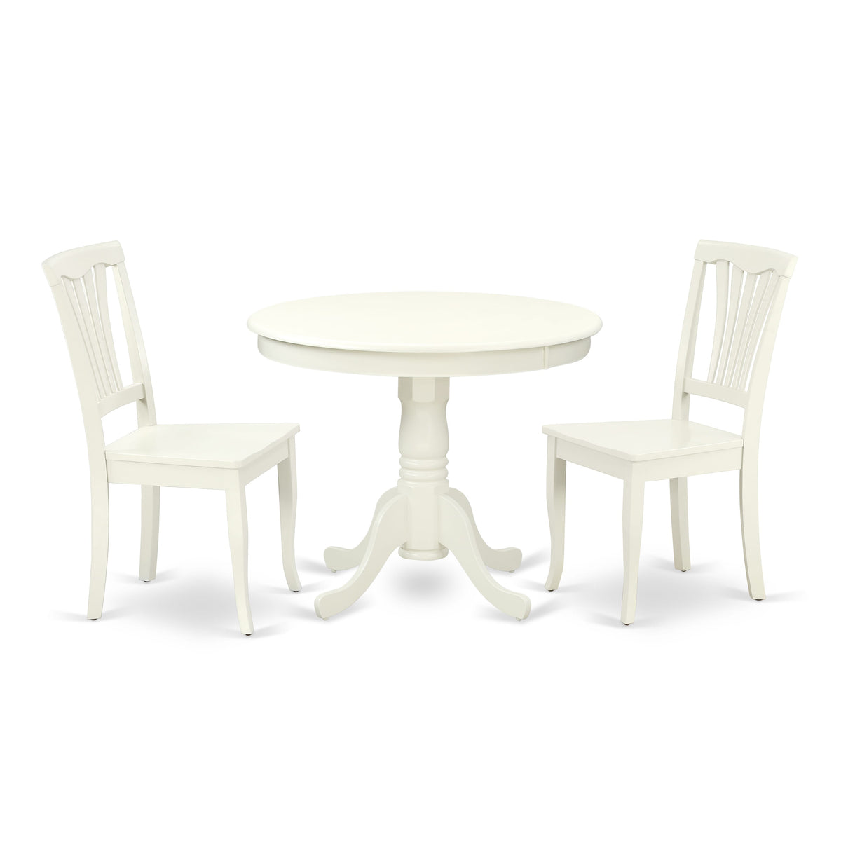 ANAV3-NSI-Y Elegant 3-Piece Dining Table Set with Pedestal and Pair of Chairs, Ideal for Compact Areas, 36x36 In in Soft Ivory