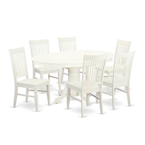 AVWE7-YBH-L Exquisite 7-Piece Oval Dining Ensemble with Extension & 6 Chairs, White Finish, 42x60 Inch