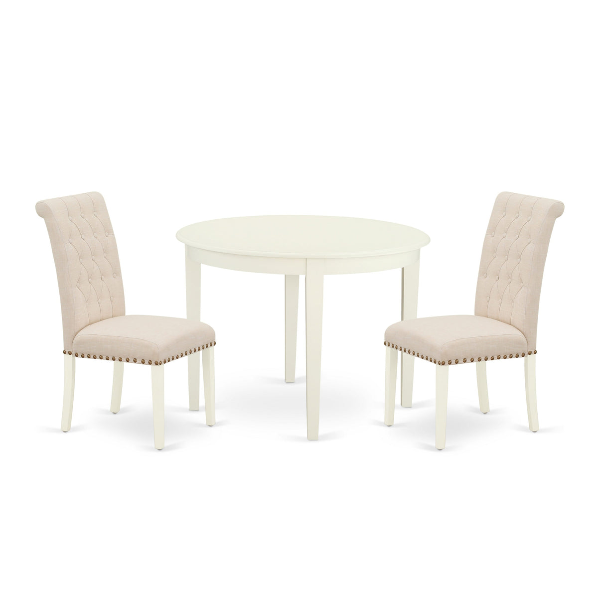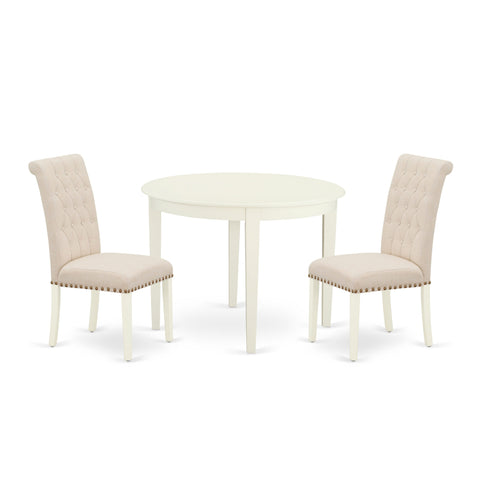 BOBR3-GHS-7Z Sophisticated 3-Piece Set Round Dining Table + 2 Beige Fabric Chairs, 42 Elegant Finish