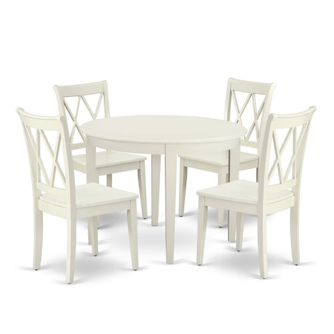 BOCL5-KPX-X 5-Piece Round Table and Chair Dining Ensemble with 4 Seats, 42 Linen White Set
