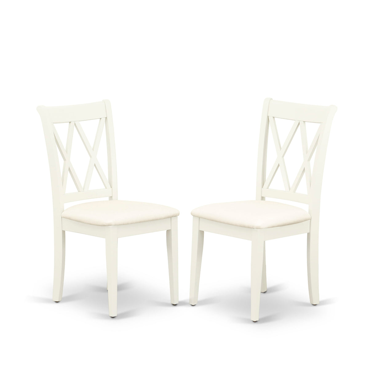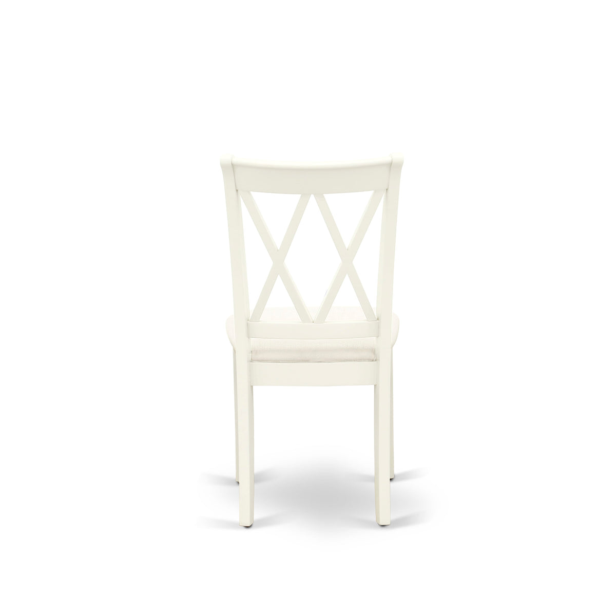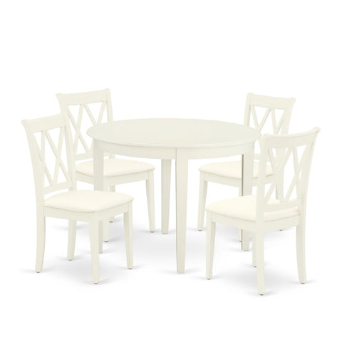 BOCL5-OHN-Y 5-Piece Dining Set with Round Table and 4 Upholstered Chairs, 42x42, in Elegant Linen White Lacquer