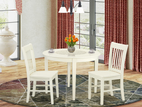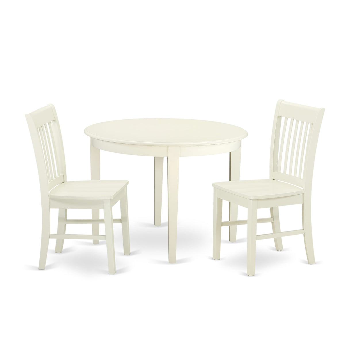 Cozy BONO3-FH6-3 Dining Set with Round Kitchen Table & 2 Chairs, 42x42 Linen White