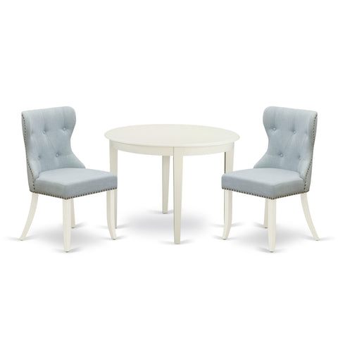 Package includes: 2 Dining Room Chairs and 1 Round Dining Table