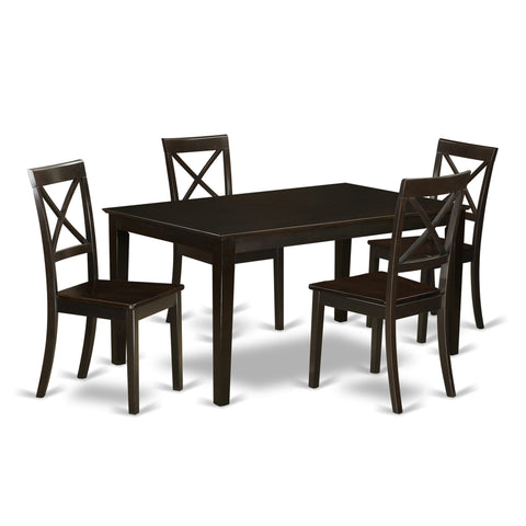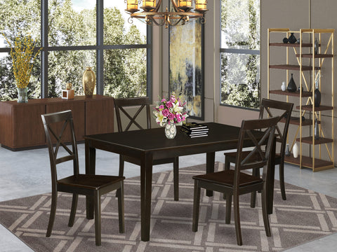 Elegant Dining Ensemble CAB5S-G14-R Rectangle Table with 4 Chairs, Rich Cappuccino Finish