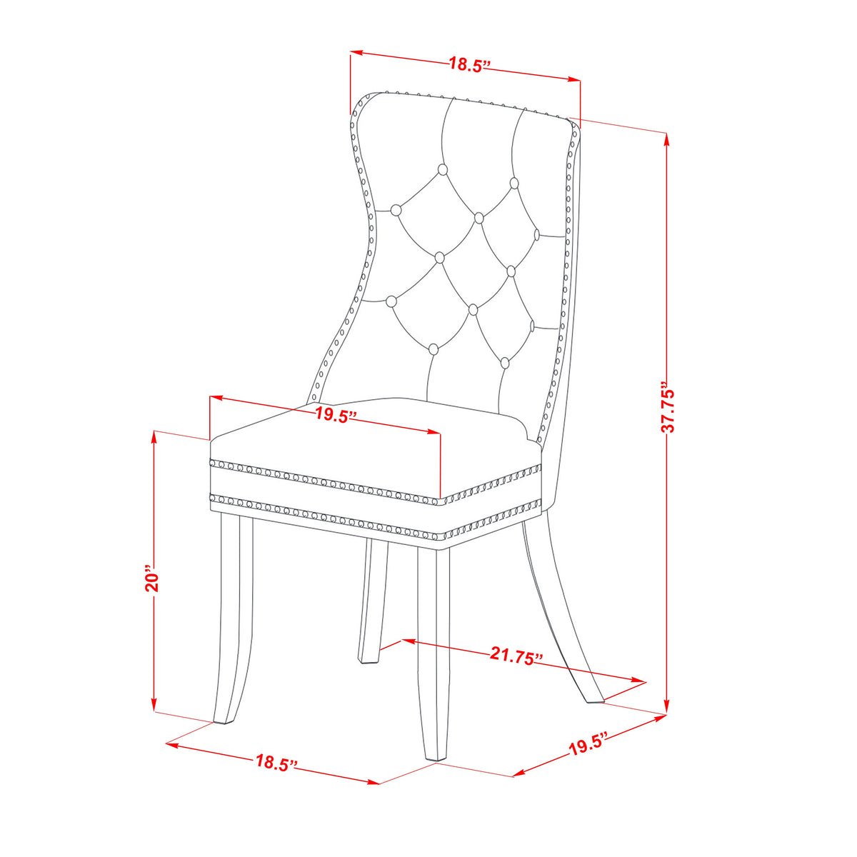 - Chair Dimension: Length: 19.5; Width: 24; Height: 38