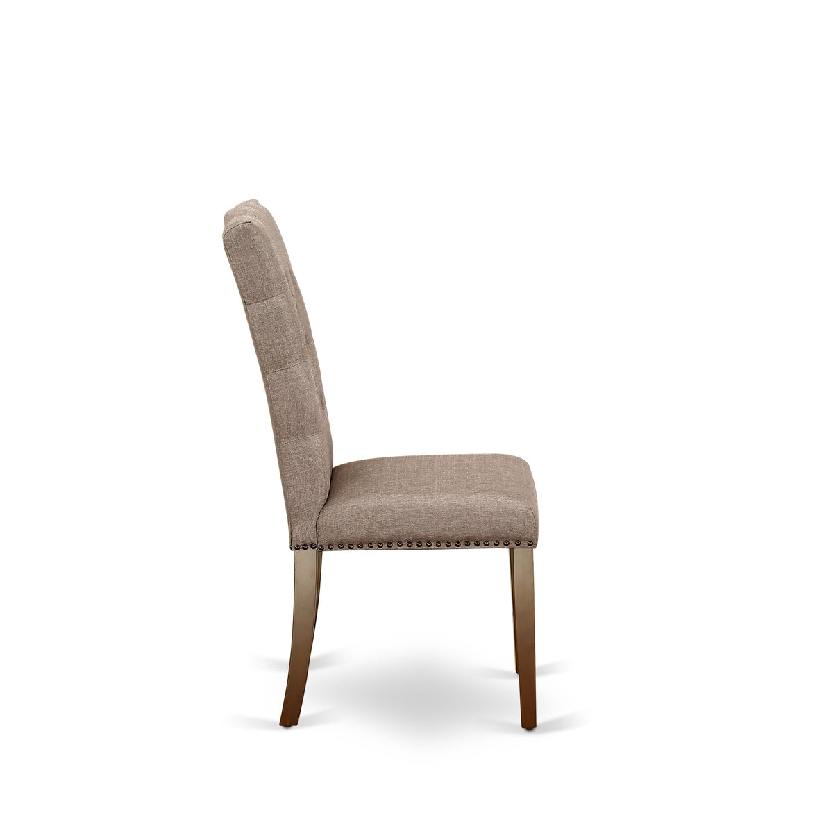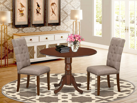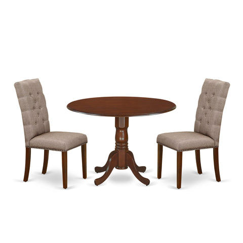 EAST WEST FURNITURE - 3-Pc dinette table set including 2 parsons dining room chairs and a round luxurious dinette table will enhance the beauty of your dining room or kitchen areas. Our dinette table set is created from strong Asian wood, known as Rubber Wood, which is rugged enough to withstand years of use. It also has an ergonomic design, which is very comfortable. A single dining table with 2 parsons dining chairs is in Mahogany finish. This kitchen set would add charm and attractiveness to your kitchen area or dining room. This dinner table is flexible and cozy. This breakfast table features a compact design ideal for small areas. The parsons dining room chair seat is created from a soft Linen Fabric cushion, with Solid Rubberwood legs and a stylish soft Linen Fabric backrest with an Asian wood body, soft cushion, and stylish button-tufted backrest design to make you cozier. Our kitchen dinette set adds some modern beauty to your home. Parson chairs and a dinette table give lots of space for your family or friends. The simplistic and elegant style is accentuated by a glossy Mahogany finish. You will definitely enjoy this beautiful wood dining table set. It's quick to assemble the parson's chairs and the dinner table with a basic tool. No additional tools are required. Easy-to-follow instructions, tools, and hardware are included. With the help of a damp cloth, you will clean up your dust easily. Buy our products in complete confidence, because your satisfaction is our 1 priority. Feel free to contact us, we are always here for you.