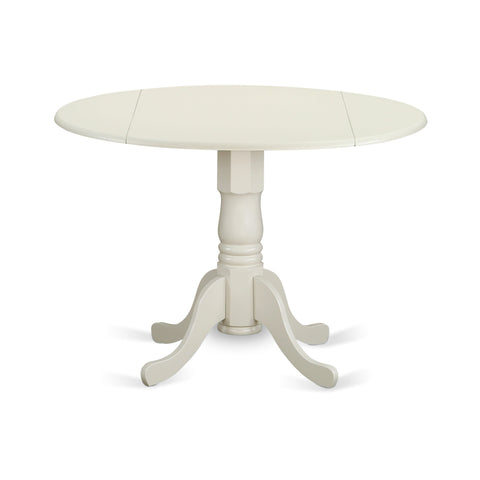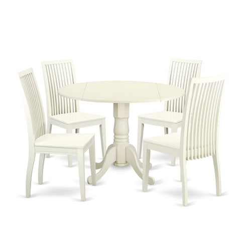 DLIP5-M7D-8 5-Piece Round Drop-leaf Dining Set Featuring 42 Table and 4 Chairs, Elegant Linen White Finish
