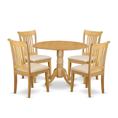 DLPO5-D23-3 5 Piece Dining Set with Foldable Top Table and Upholstered Seats, Oak Finish, for Four