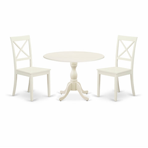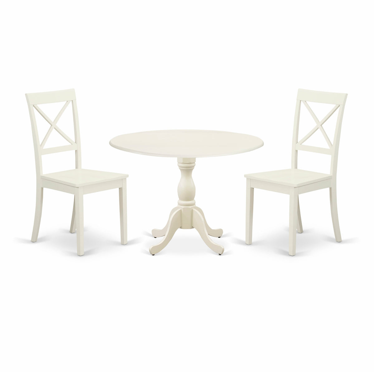 Elevate Dining with DMBO3-6BL-7 3 Piece Set Featuring Dropleaf Table & Chairs, 42 Linen White Finish