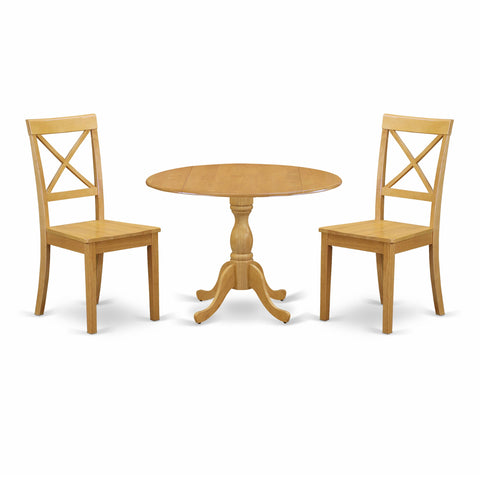 DMBO3-9PL-3 Three-Piece Compact Dining Set with Round Leaf Table & Two Wood Chairs, 42x42 Oak Wood Design