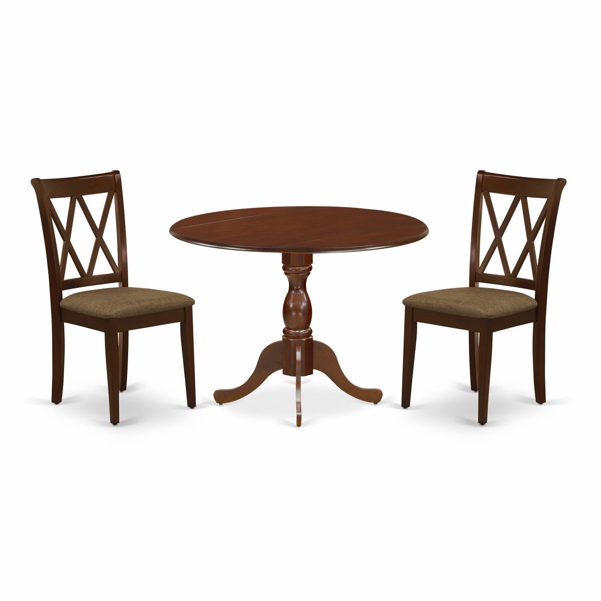 The Gorgeous 3 Piece dining table set consists of 1 Drop Leaves wooden dining table and 2 matching dining chairs. Our dining chair adds a sense of sophistication to your room and the innovative design is compatible seamlessly with any décor. The contemporary Slatted Back of these dining chairs blends beautifully with the Linen Fabric seat, creating a sophisticated appearance. Update your décor with the beautiful Dining Chair. Boasting soft Linen Fabric Seat with spring support, comfortable padded cushion, and solid natural wood frame chair is overflowing in both quality and design. Our dining table is designed in classical style. In addition, the Mahogany color match with wood dining chairs making its appeal more attractive. The Spacious tabletop made of high-quality Rubber Wood material help for heightened sturdiness and long-lasting use. Designed with easy and fast assembly in mind, each set comes conveniently packed with easy-to-follow instructions and all necessary tools included. Our dining set is simple to clean with a damp cloth and furniture cleanser because their brush finish is smooth. Enjoy with East West Furniture!