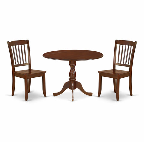 DMDA3-DJ4-2 Charming Mahogany 3-Piece Round Dining Set with Drop-leaf Table & Solid Wood Seats