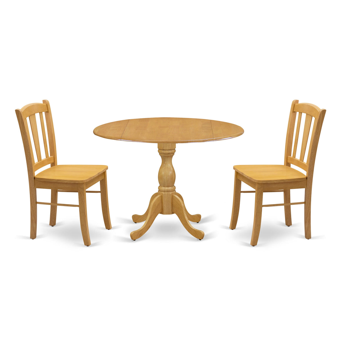 DMDL3-4MB-5 3Pc Set 42 Round Dining Table & Two Chairs in Classic Oak Tone for Elegant Dining Spaces