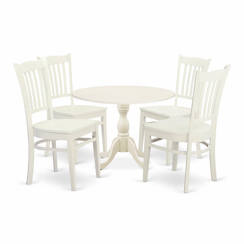DMGR5-Z3T-M 5-Piece Dining Set with Round Dropleaf Table and 4 Chairs, 42-Inch, Linen White