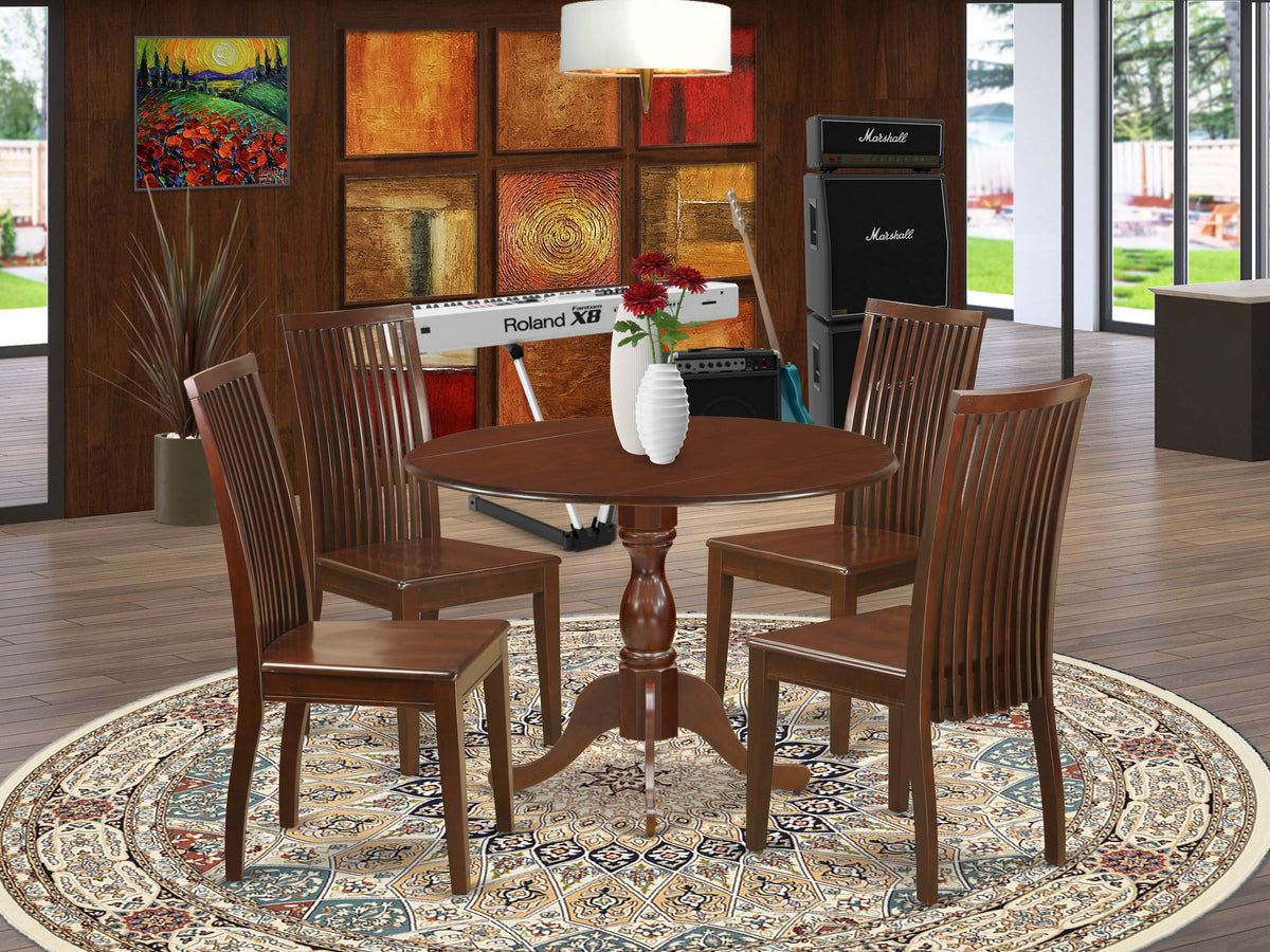 This 5-Piece Round dinette set provides a dining room table and 4 dining room chairs that can fully accommodate your family. Our dining table set provides a sophisticated and eye-catching appeal. Our elegant design, the Mahogany wood chair is great to match any dining room. Upgrade your home decor with our Rustic style kitchen table set. The mahogany finish adds a unique appeal to any kitchen room while the solid wood legs of both the kitchen chair and the wood table will surely help you to enhance the solidness and traditional feel. The modern style dining table set adds a touch of sophistication to any kitchen area that you and your family will absolutely enjoy. Our dining room set wooden dining chairs will bring you a fantastically enjoyable experience because it has a Slatted Back with cone-shaped legs. Featuring a smooth surface, our dining table and dining chairs are simple to be kept clean by using a simple wipe down for hassle-free maintenance. Assembly needs a short amount of time but it will be easy to assemble if you will follow the step-by-step instructions.